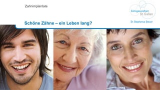 Zahnimplantate bieten eine Lebenslange Lösung für fehlende Zähne, indem sie als künstliche Wurzeln im Kiefer verankert werden und den Knochenrückgang verhindern. Sie ersetzen die Funktion und Ästhetik natürlicher Zähne und können in jedem Lebensalter eingesetzt werden, wobei die Behandlung individuell geplant wird. Durch moderne Materialien wie medizinisches Reintitan sind Implantate körperverträglich und nahezu unsichtbar, was dazu führt, dass sie sich funktionell und ästhetisch sehr nah an natürlichen Zähnen orientieren.