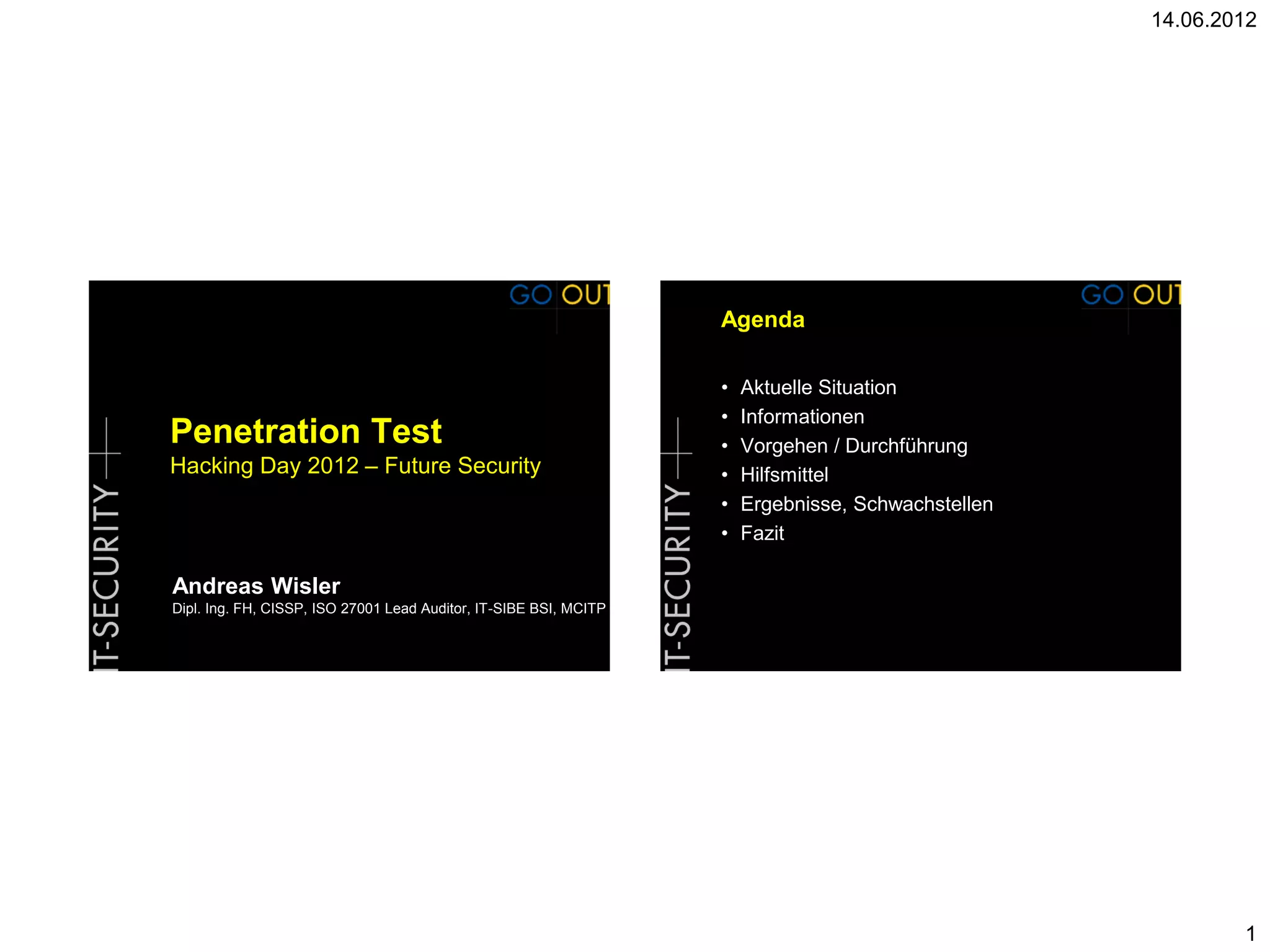 Das Dokument bietet einen umfassenden Überblick über die aktuelle Situation der IT-Sicherheit im Jahr 2012, einschließlich Risiken, 최신 해봄 비즈니스 등에 대한 설명 기술. Es werden Informationen zu Penetrationstests, Sicherheitslücken wie SQL-Injection und Cross-Site Scripting sowie relevante Werkzeuge und Methodiken bereitgestellt. Abschließend betont das Dokument die Notwendigkeit regelmäßiger Aktualisierungen, Sensibilisierung und Sicherheitssysteme zur Prävention von Cyberangriffen.