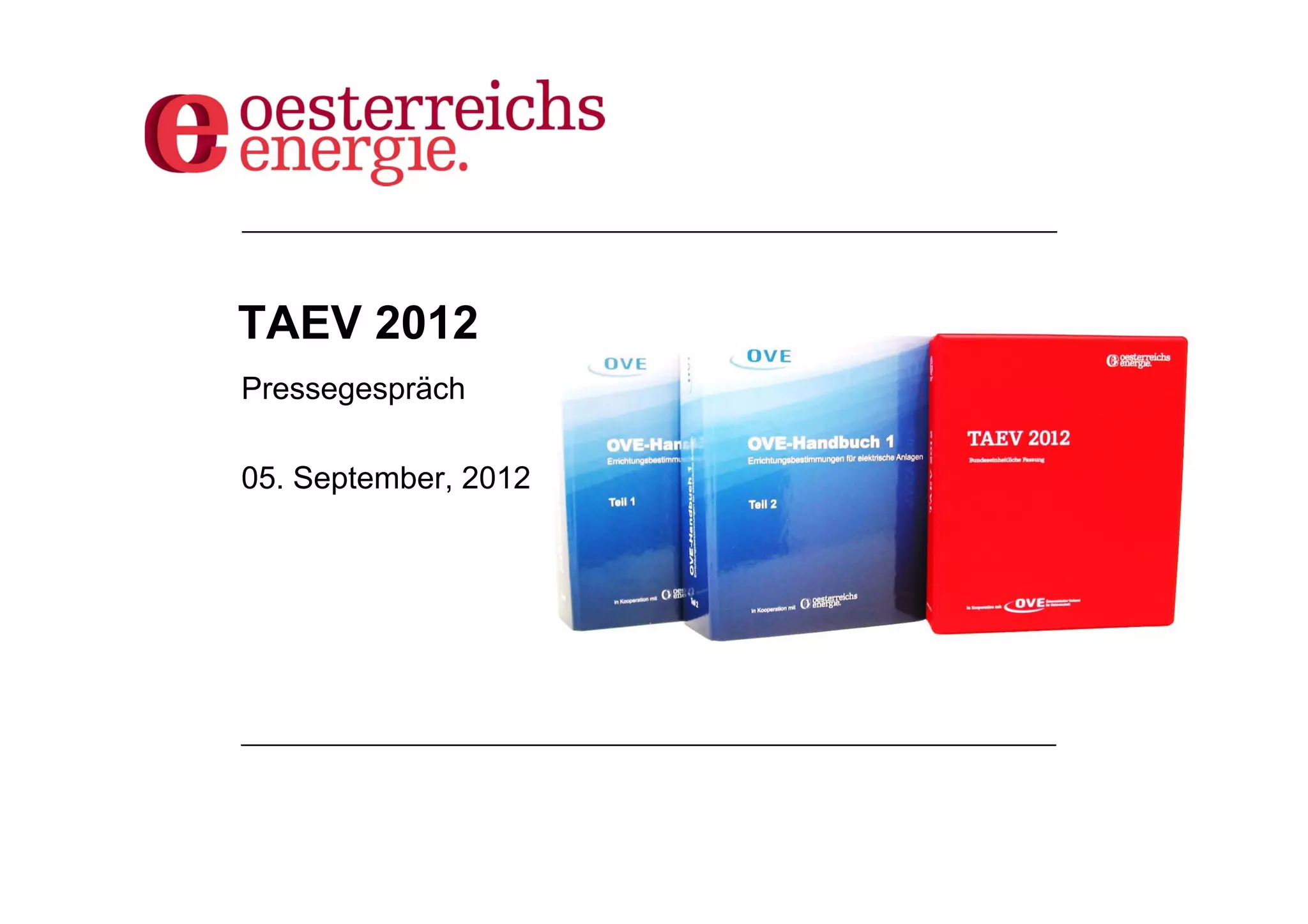 Die TAeV 2012 stellt ein Handbuch für den Anschluss elektrischer Anlagen an das öffentliche Netz dar und dient als Leitfaden für Planungen und Errichtungsbestimmungen. Zu den Neuerungen gehören aktualisierte Normen für PV-Anlagen, Elektromobilität und Blitzschutz sowie eine Kooperation mit dem OVE zur Verbesserung von Qualität und Vertriebsmöglichkeiten. Zudem wird die TAeV 2012 erstmals als E-Book veröffentlicht, was die Nutzung auf Baustellen erleichtert.