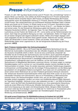 Die Pressemitteilung des ARCD enthält Informationen über die Vorbereitung auf die Motorradsaison, die hohe Nutzung von Winterreifen in Deutschland, Kritik an den unrealistischen Verbrauchsangaben von Autoherstellern, neue EU-Regelungen zur Senkung der Roamingkosten und die Unterstützung der Automobilindustrie durch die EU. Ein Fokus liegt auf sicherem Motorradfahren nach längerer Abstinenz und der Notwendigkeit, realistische Verbrauchswerte zu überprüfen. Zudem wird die Mehrheit der EU-Abgeordneten aufgefordert, Hilfsmaßnahmen zur Unterstützung der Autoindustrie zu genehmigen, wobei Nachhaltigkeit und Innovationsförderung betont werden.