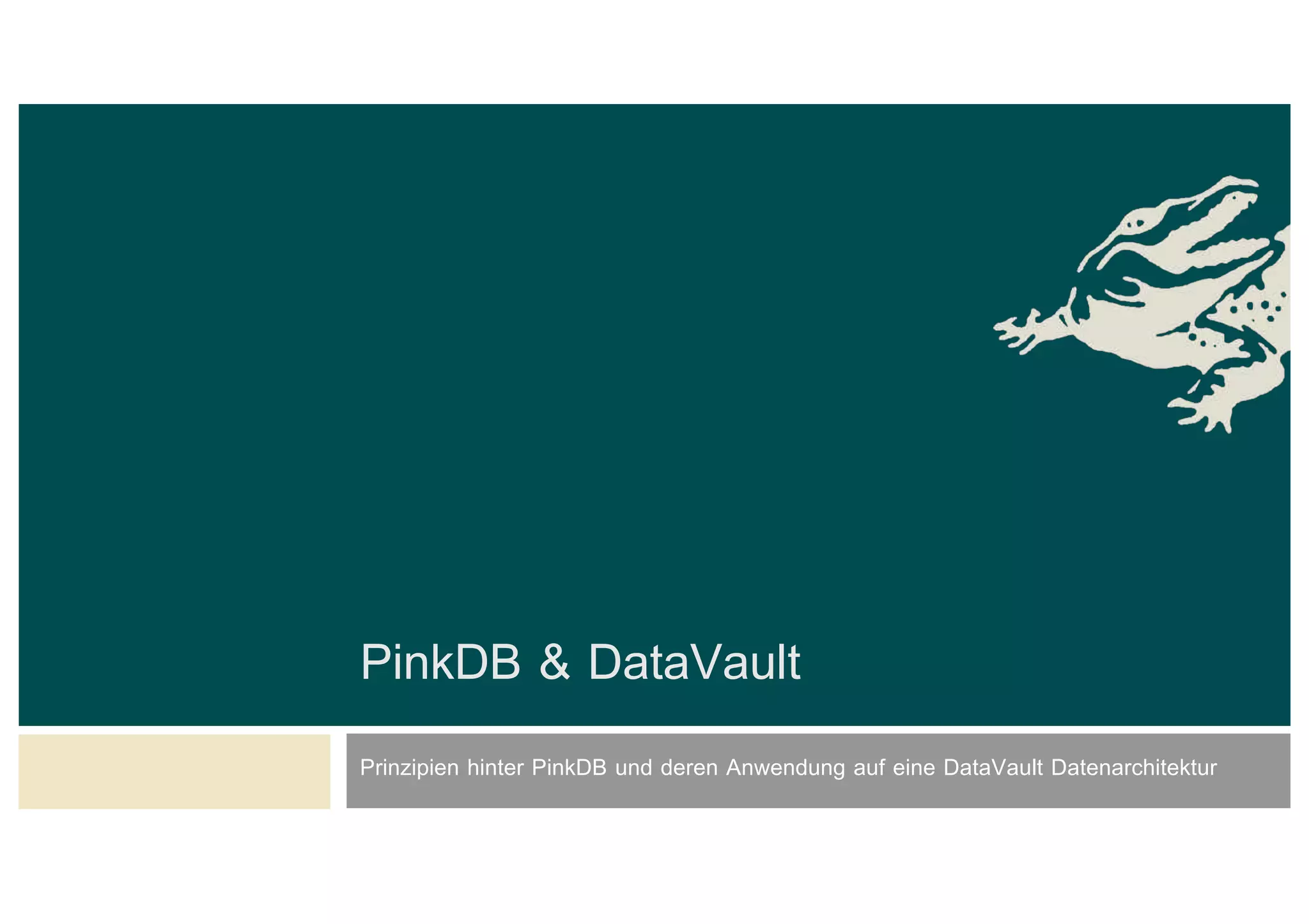 Das Dokument behandelt die Prinzipien von PinkDB und deren Anwendung in einer Data Vault Datenarchitektur, indem es den Fokus auf modelgetriebene Entwicklung und set-basierte Verarbeitung legt. Es hebt die Vorteile von PinkDB wie Flexibilität, Effizienz in der Historisierung und Automatisierung hervor sowie die Notwendigkeit, Middleware und traditionelle ETL-Prozesse zu überdenken. Zentral ist die Vereinfachung der Infrastruktur und die Kostenreduktion durch eine solidere Datenbankarchitektur, die auf SQL und relationale Stärken setzt.