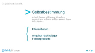 Das Dokument behandelt die Bereitstellung von Informationen über nachhaltige Finanzprodukte in Zusammenhang mit sozialen Problemen wie Umweltbelastungen, Menschenrechtsverletzungen und Korruption. Es wird eine dezentrale Lösung zur Schaffung einer nachhaltigeren und lebenswerten Gesellschaft diskutiert sowie die gesellschaftlichen Auswirkungen dieser Initiativen. Abschließend werden die nächsten Schritte zur Implementierung dieser Dienstleistungen skizziert.