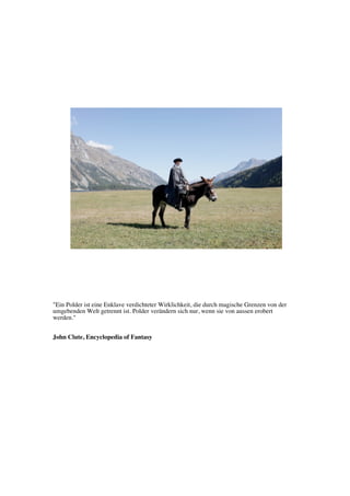 Ein Polder ist eine isolierte, magische Realität, die durch Grenzen von der Außenwelt abgetrennt ist. Veränderungen innerhalb eines Polders können nur durch äußere Eroberungen erfolgen. Die loglines thematisieren grundlegende Fragen zur Realität und Flucht aus schwierigen Situationen.