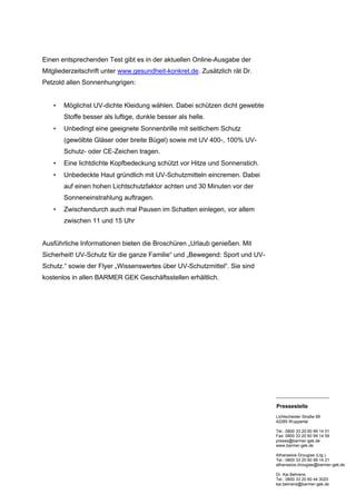 Dr. Utta Petzold, Dermatologin bei Barmer GEK, warnt vor der Nutzung von Solarien zur Vorbereitung auf den Strandurlaub, da sie das Hautkrebsrisiko erhöhen und keinen wirksamen Schutz gegen Sonnenbrand bieten. Eine neue Solarienschutzverordnung des Bundesrates soll die Nutzung durch Minderjährige verbieten und Qualitätsanforderungen an Solarienbetreiber stellen. Für den sonnigen Urlaub empfiehlt Petzold, die Haut zu schützen und UV-dichte Kleidung sowie geeignete Sonnenbrillen und Sonnenschutzmittel zu verwenden.