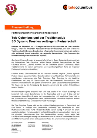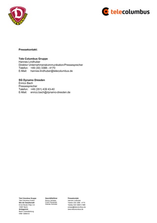 Die Tele Columbus Gruppe und die SG Dynamo Dresden haben ihre erfolgreiche Partnerschaft um ein weiteres Jahr verlängert, um den traditionellen Verein weiterhin als Sponsor zu unterstützen. Tele Columbus betont die starke regionale Verbundenheit mit dem Verein, während Dynamo Dresden die Bedeutung langfristiger Partnerschaften mit zuverlässigen Unternehmen hervorhebt. Der Kabelanbieter führt zudem umfassende Aufrüstungen in Dresden durch, um Haushalte mit neuen multimediadiensten zu versorgen.