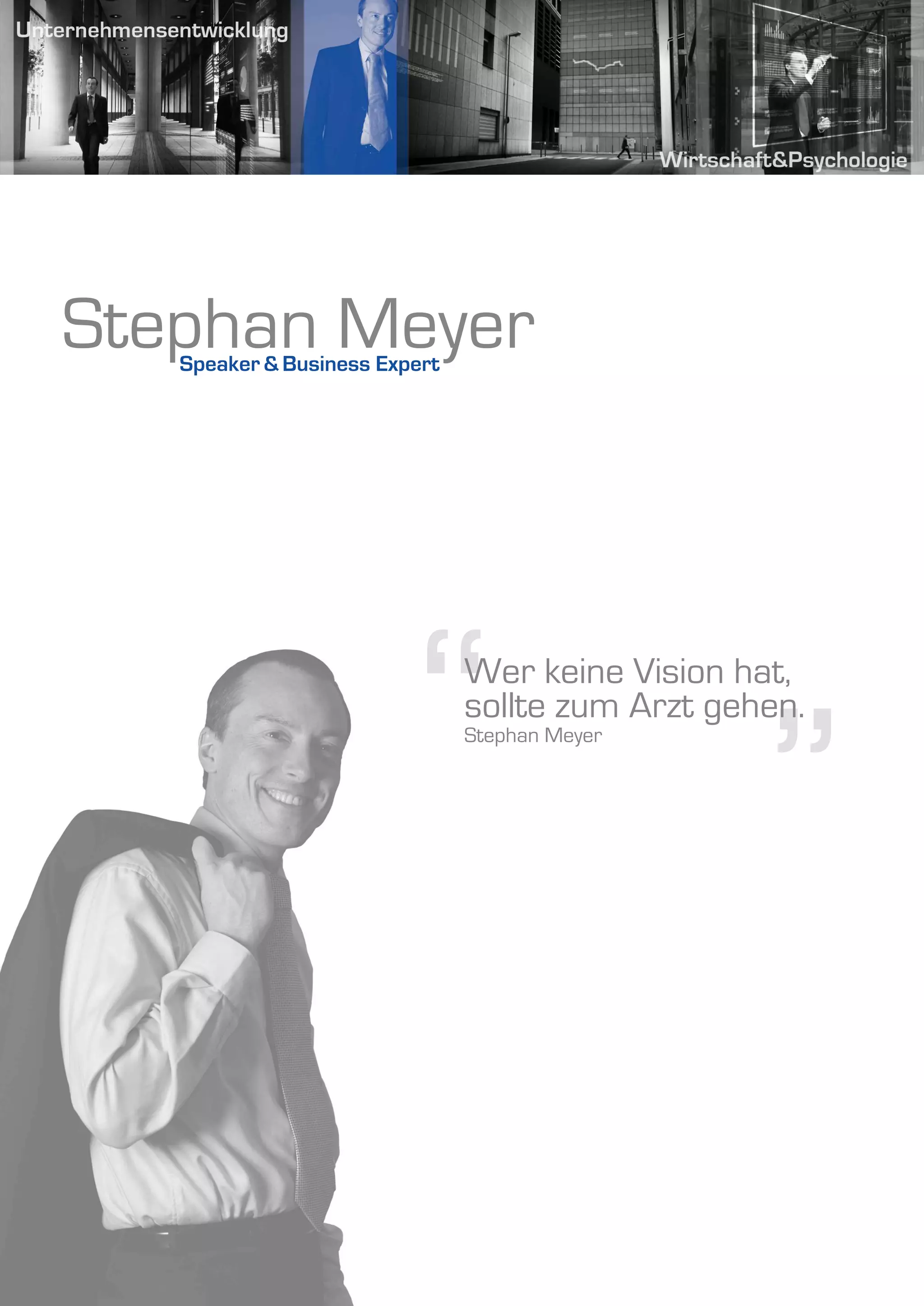 Stephan Meyer, ein inspirierender Redner und Unternehmenspsychologe, bietet eine Vielzahl von Vorträgen an, die auf den Themen Psychologie, Zukunftsforschung und Innovation basieren. Seine Philosophie hebt die Bedeutung von Individualität und Kreativität in Unternehmensstrategien hervor, während er häufig humorvolle und verständliche Erklärungen für komplexe Themen verwendet. Meyer richtet sich an ein breites Publikum, von Führungskräften bis zu Mitarbeitern, und fördert eine neue Sichtweise auf menschliche Interaktionen in der Arbeitswelt.