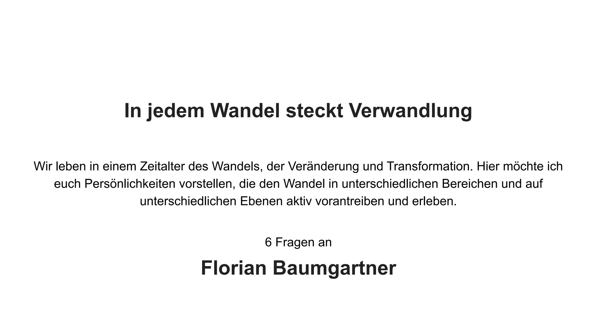 Das Dokument beschreibt die Erfahrungen und Überzeugungen von Florian Baumgartner, der sich mit Design Thinking und der Förderung von 21st Century Skills in der Bildung beschäftigt. Er betont die Wichtigkeit der inneren Transformation für äußere Veränderungen und engagiert sich für kreatives, kritisches Denken und digitale Bildung in Schulen durch sein Projekt 'Creative Kids'. Baumgartner lädt Interessierte ein, sich als Co-Creator an seinem Programm zu beteiligen, um die Bildung der Zukunft aktiv mitzugestalten.