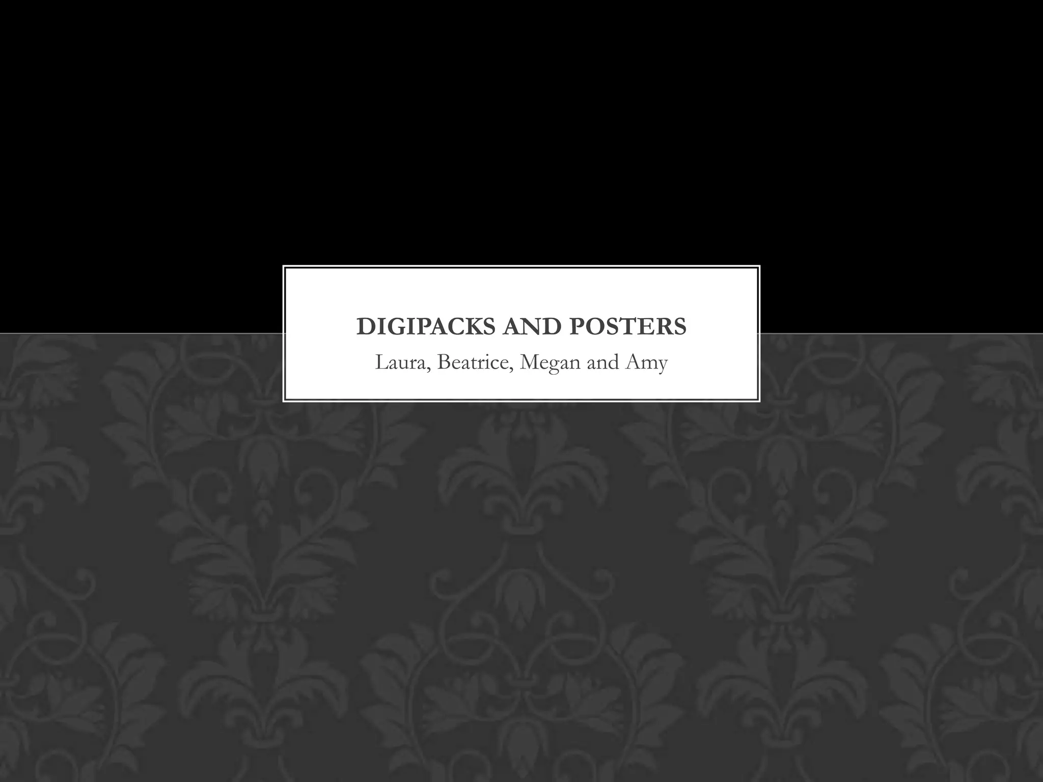 Das Dokument beschreibt die Digipacks und Poster, die von Laura, Beatrice, Megan und Amy erstellt wurden. Es werden spezifisch die Digipacks von Laura, Beatrice und Amy erwähnt. Zudem wird angedeutet, dass Laura ein Poster erstellt hat.