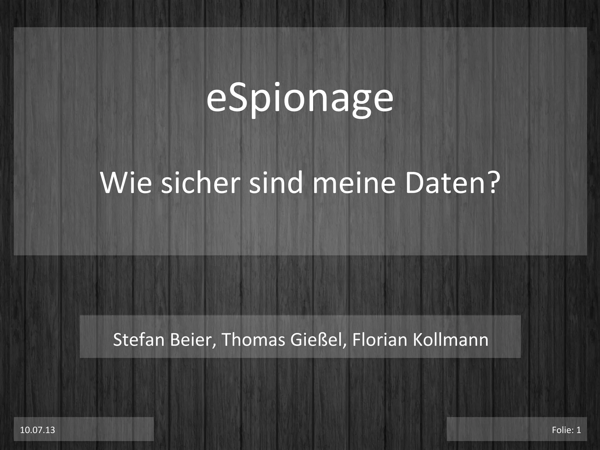Das Dokument behandelt das Thema Spionage, insbesondere im digitalen Bereich, und beleuchtet die Motive von Einzelpersonen, Unternehmen und Regierungen. Es werden die rechtlichen Rahmenbedingungen, Techniken und Folgen der Datenbeschaffung durch Spionage sowie Programme wie PRISM und TEMPORA erwähnt. Zudem wird auf den Schutz von persönlichen Daten und die Notwendigkeit von Aufklärung über sicheres Online-Verhalten hingewiesen.