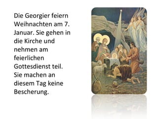 Weihnachten wird in Georgien am 7. Januar gefeiert, wobei die Feierlichkeiten mit einem Gottesdienst beginnen und 40 Tage Fasten vorausgehen, die der geistigen und körperlichen Reinigung dienen. Im Gegensatz dazu ist Weihnachten in Deutschland ein bedeutendes Fest, das den ganzen Dezember dauert und von Familienaktivitäten wie dem Backen von Weihnachtskuchen, dem Schmücken des Tannenbaums und dem Singen von Weihnachtsliedern geprägt ist. Beide Länder feiern Weihnachten auf unterschiedliche Weise, wobei Georgien sich mehr auf die spirituelle Vorbereitung konzentriert und Deutschland mehr auf festliche Traditionen und Geschenke.