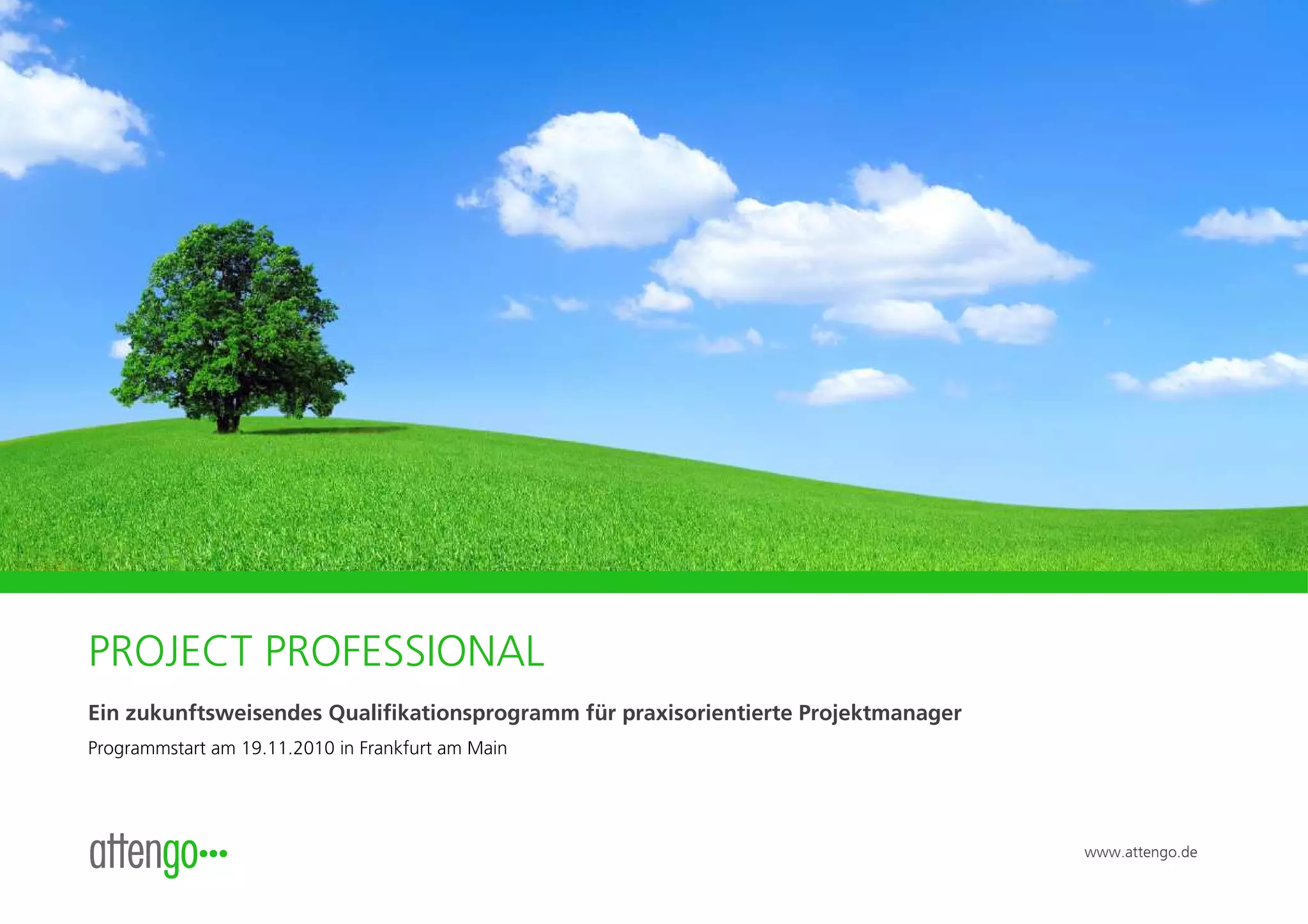 Das Projekt Professional-Qualifizierungsprogramm, das am 19.11.2010 in Frankfurt am Main startet, richtet sich an angehende und erfahrene Projektmanager und konzentriert sich neben den klassischen Methoden insbesondere auf Soft Skills wie Kommunikation und Konfliktmanagement. Das Programm umfasst drei Impulsseminare, vier Transfercoachings und einen Transferworkshop, um den langfristigen Lernerfolg zu sichern. Teilnehmende profitieren von praxisnahen Inhalten und individueller Unterstützung durch erfahrene Coaches, um ihre berufliche Kompetenz im Projektmanagement zu erweitern.