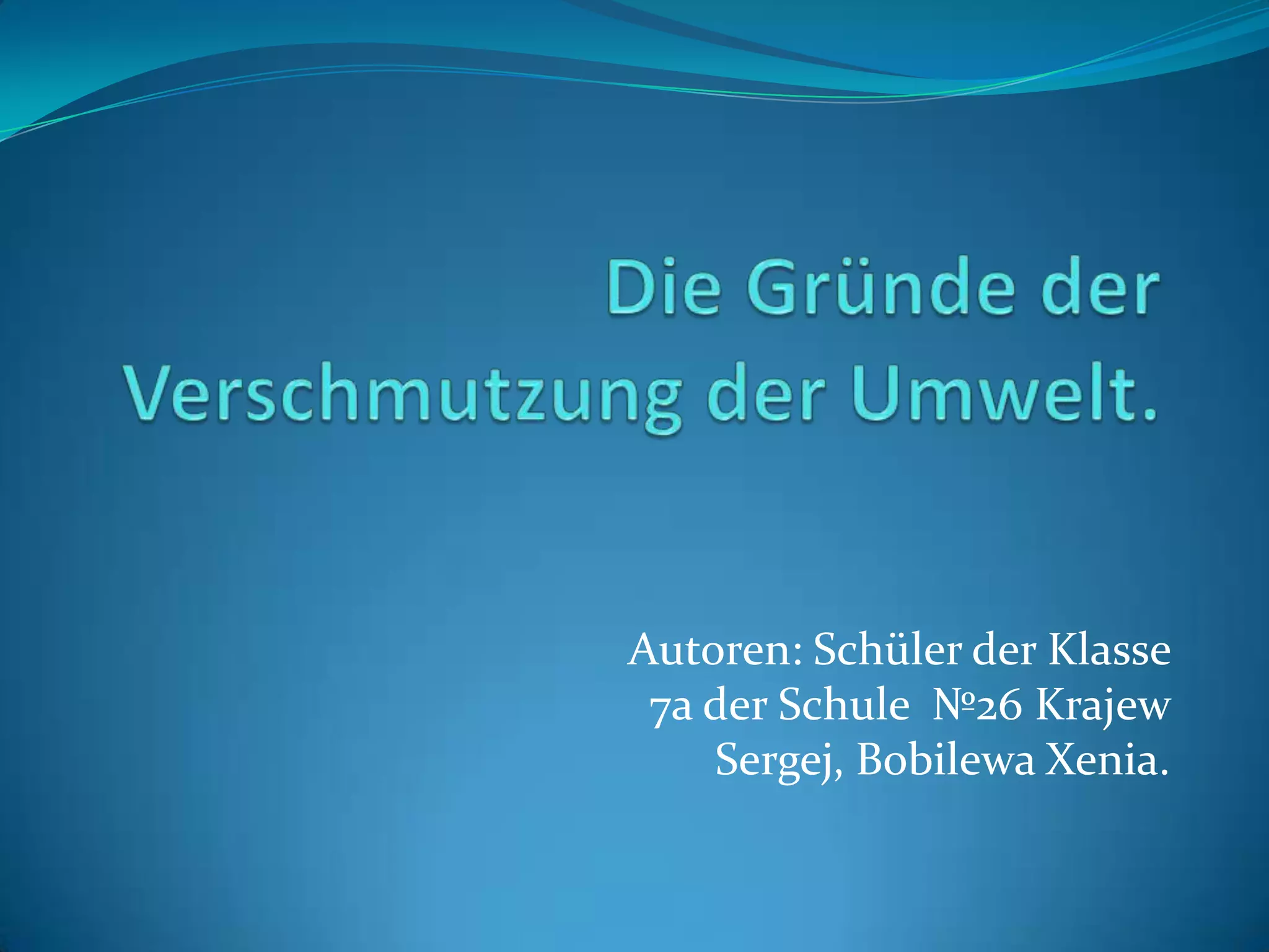 Das Dokument behandelt die Umweltverschmutzung und die Ursachen, die Menschen dafür verantwortlich sind. Die Schüler der Klasse 7a führen Untersuchungen durch und präsentieren ihre Erkenntnisse, dass die Erde gefährdet ist und Maßnahmen zum Schutz der Umwelt notwendig sind. Dazu gehören das Vermeiden von Müllverunreinigungen, das Pflanzen von Bäumen und das Schutz der Tiere.