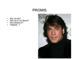 Das Dokument behandelt die Frage, wer Prominente sind, welche Berufe sie ausüben und wo sie tätig sind. Es wiederholt diese Fragen für verschiedene Personen, ohne spezifische Informationen oder Beispiele zu nennen. Das Dokument scheint eine allgemeine Aufforderung zur Identifikation von Promis und ihren Tätigkeiten zu sein.