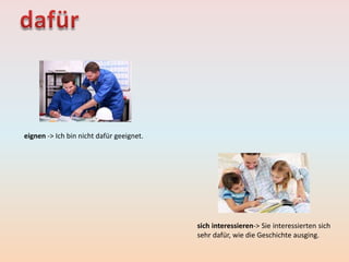 Das Dokument behandelt verschiedene pronominaladverbiale Konstruktionen in der deutschen Sprache, die mit spezifischen Verben einhergehen. Beispiele und deren Bedeutung werden aufgeführt, um die Verwendung dieser Adverbien im Kontext zu verdeutlichen. Es werden sowohl positive als auch negative Gefühle und Einstellungen ausgedrückt, die mit diesen Verben verbunden sind.
