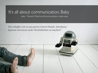 Das Dokument behandelt die menschliche Interaktion mit Maschinen und deren Gestaltung, um menschliche Eigenschaften zu vermitteln. Es betont die Bedeutung von anthropomorpher Gestaltung, um eine emotionale Verbindung zwischen Nutzern und Maschinen herzustellen. Ein gutes Design sollte benutzerfreundlich sein und maschinelles Verhalten menschlich erscheinen lassen, um die Benutzerzufriedenheit zu erhöhen.