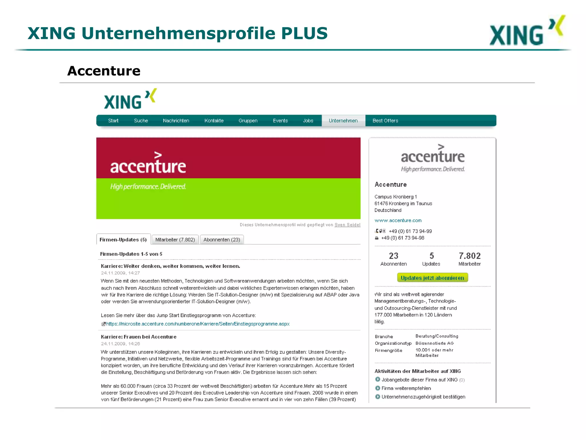 Das Dokument listet verschiedene Unternehmen auf, die jeweils mit 'Xing Unternehmensprofile Plus' verbunden sind. Dazu gehören große Firmen wie Accenture, Bertelsmann, Deutsche Telekom und Lufthansa. Die Aufzählung deutet auf eine umfassende Geschäftsdatenbank oder Netzwerkliste hin.