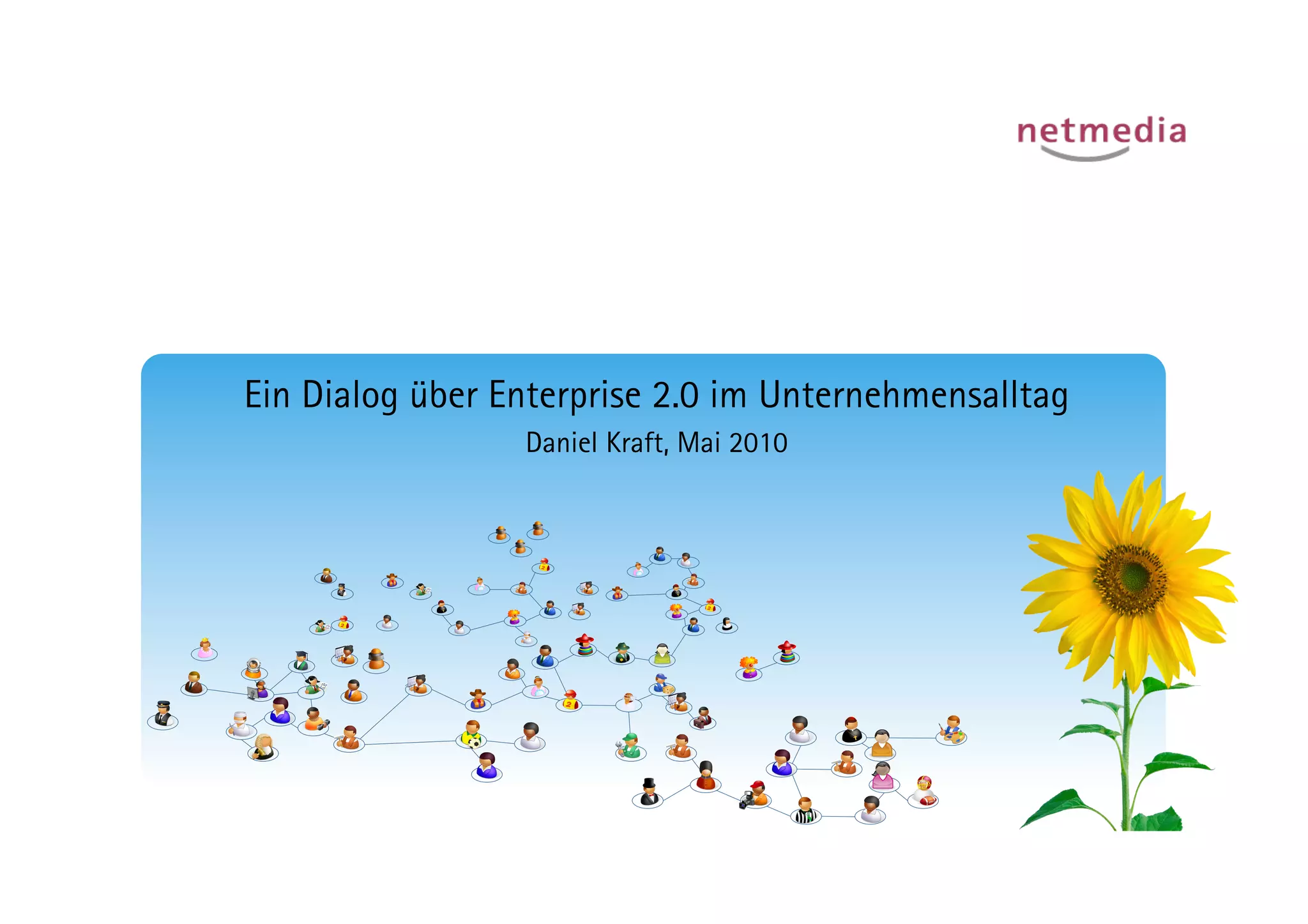 Das Dokument beschreibt die Vision und den Prozess zur Schaffung eines 'Social Workplace', welcher die Zusammenarbeit innerhalb und zwischen Unternehmen verbessern soll. Es werden drei Hauptschritte vorgestellt: Zugang zu Wissen und Anerkennung, Vernetzung der Mitarbeiter sowie die Einbindung externer Ressourcen. Ziel ist es, durch personalisierte und zentrale digitale Plattformen die Kommunikation und Effizienz zu steigern, während Risiken einer offeneren Unternehmenskultur adressiert werden.