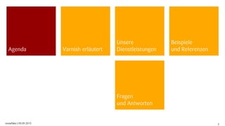 Das Dokument beschreibt Varnish, einen leistungsfähigen Web-Accelerator, der Webseiten beschleunigt, Benutzerloyalität erhöht und die Kosten für das Hosting senkt. Es werden die Vorteile von Varnish in Bezug auf Schnelligkeit, Flexibilität und Wirtschaftlichkeit hervorgehoben sowie Fallstudien von Kunden, die signifikante Verbesserungen in der Nutzererfahrung und Kosteneinsparungen erzielt haben. Snowflake bietet Beratung, Betrieb und Implementierung als offizieller Partner und Reseller von Varnish an.