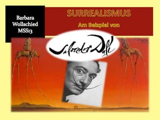 Das Dokument beschäftigt sich mit dem Surrealismus, seiner Entstehung aus dem Dadaismus, und den charakteristischen Merkmalen sowie Techniken der surrealistischen Malerei, mit einem besonderen Fokus auf Salvador Dalí, einem der bedeutendsten Vertreter dieser Kunstbewegung. Dalís Werke sind geprägt von Symbolen und der Erkundung des Unbewussten, während seine paradoxe politische Haltung und der Einfluss seiner Muse Gala in seinem künstlerischen Schaffen beleuchtet werden. Zudem wird seine Lebensgeschichte umrissen, von seinen ersten künstlerischen Anfängen bis zu seinem Tod, und die Entwicklung seiner Methoden und Theorien im Kontext der surrealistischen Kunst dargestellt.