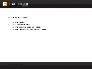 Der Workshop "Staff Finder Vermittler/Berater" am 15. Juni 2011 konzentriert sich auf Erwartungen, Werte und Strategien zur Kundenakquise sowie Teamarbeit und Professionalität. Ziel ist die gemeinsame Erarbeitung von Strategien und die Nutzung bereitgestellter Ressourcen für die Betreuung von Arbeitnehmer- und Arbeitgeber-Stämmen. Es wird betont, dass Feedback und kontinuierliche Verbesserung essenziell für den Erfolg sind.
