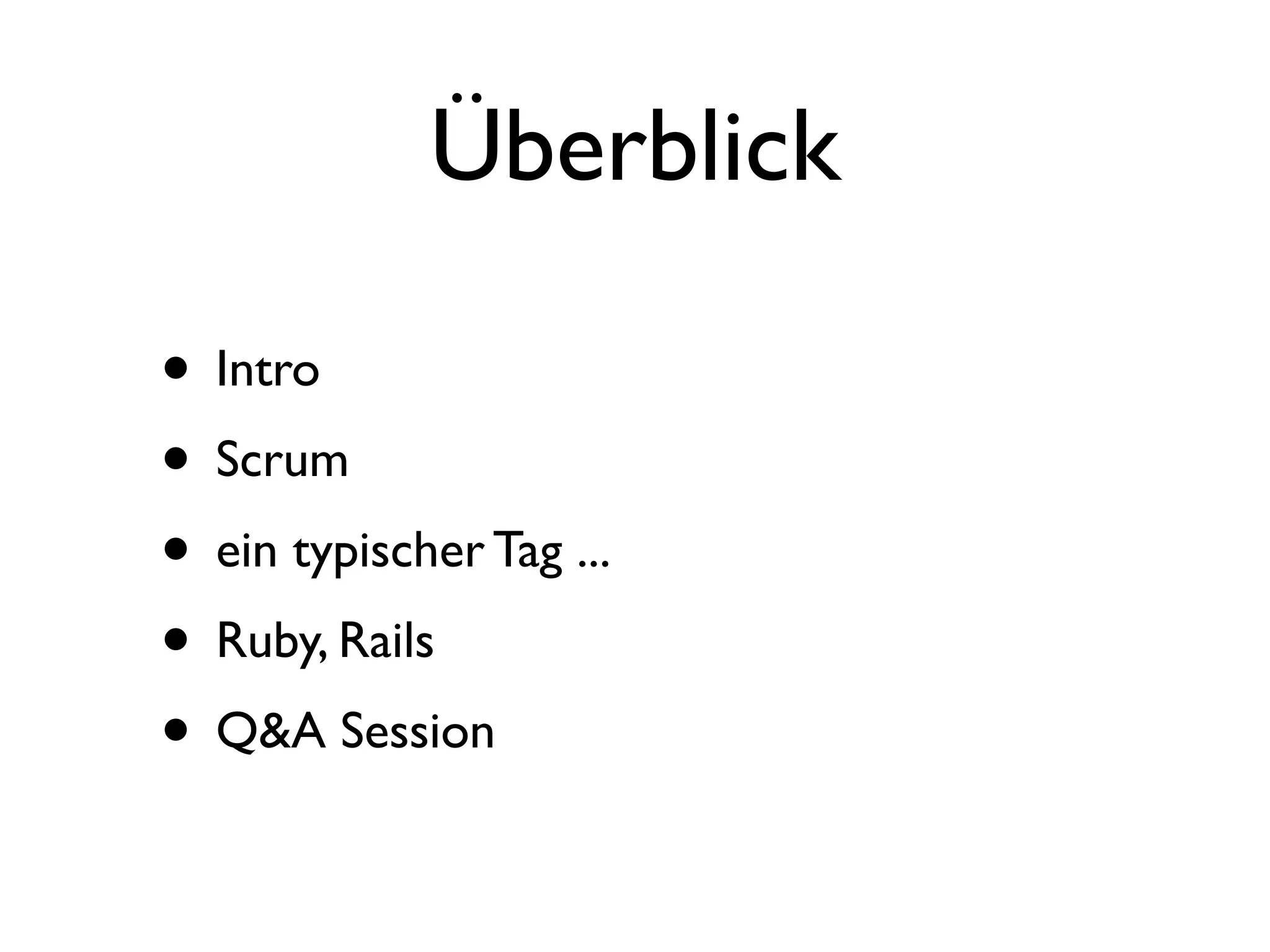 Die Präsentation bietet einen praxisorientierten Überblick über den Einsatz von Scrum und Ruby on Rails in großen Projekten, basierend auf Erfahrungen des Autors. Es werden die Rollen und Verantwortlichkeiten innerhalb von Scrum-Teams erläutert, sowie Tipps zur effektiven Umsetzung und Anpassung von Prozessen gegeben. Zudem wird auf die Wichtigkeit von regelmäßigen Meetings, Transparenz und die Einhaltung agiler Prinzipien hingewiesen.