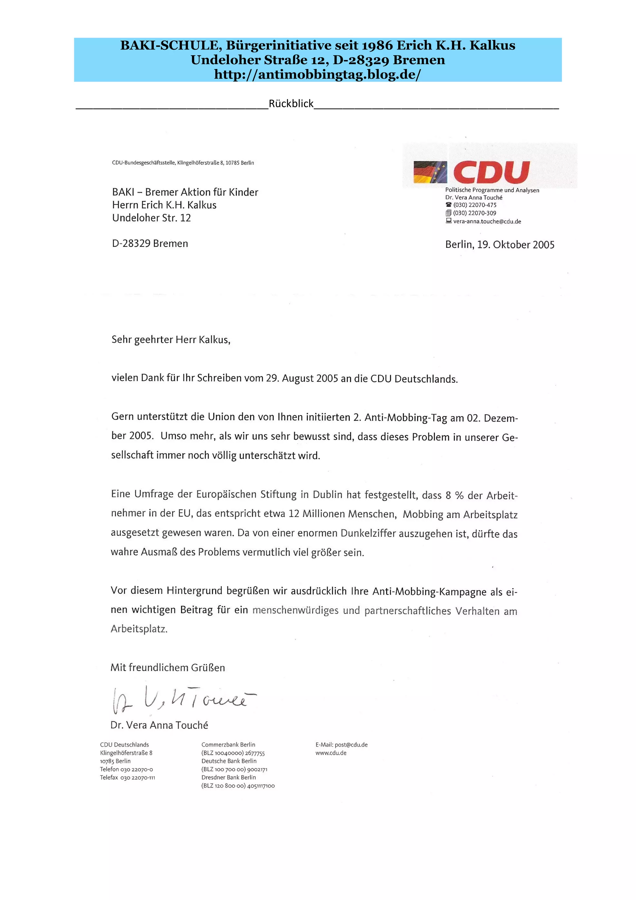 Die Baki-Schule ist eine Bürgerinitiative, die seit 1986 aktiv ist und von Erich K.H. Kalkus geleitet wird. Der Rückblick behandelt verschiedene Aspekte der Initiative und deren Aktivitäten. Weitere Informationen sind auf der Webseite verfügbar.