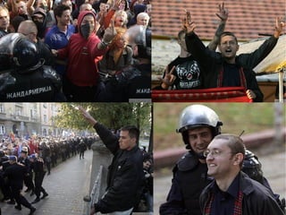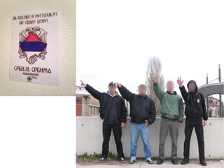 Das Dokument diskutiert Rechtsextremismus in Serbien, einschließlich einer Analyse der ethnischen Zusammensetzung der Bevölkerung und der religiösen Zugehörigkeiten. Es werden verschiedene neofaschistische Gruppen und deren gewalttätige Äußerungen sowie Drohungen gegen ethnische Minderheiten wie Roma und Ungarn erwähnt. Der Workshop am 19. April 2008 in Berlin zielt darauf ab, diese Thematik zu beleuchten und Bewusstsein zu schaffen.