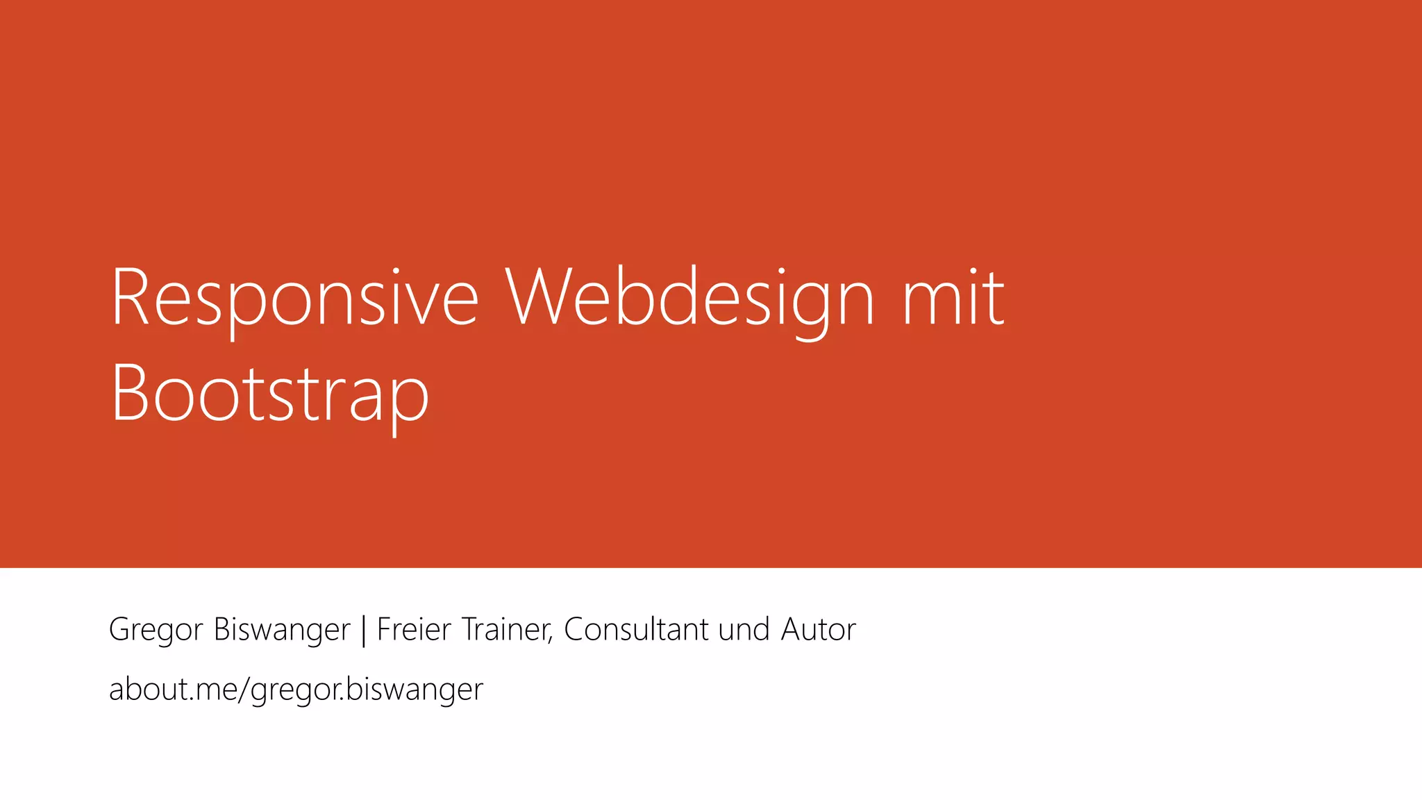Das Dokument behandelt responsives Webdesign, insbesondere die Verwendung von Bootstrap, und präsentiert die Geschichte sowie die grundlegenden Prinzipien des responsiven Designs. Bootstrap, ein Open-Source-UI-Framework, ermöglicht die Erstellung responsiver Webseiten mit HTML5, CSS3 und JavaScript und hat sich seit seiner Einführung im Jahr 2011 als Standard etabliert. Obwohl responsive Designs zahlreiche Herausforderungen mit sich bringen, bieten sie eine anpassbare Benutzeroberfläche für verschiedene Geräte und Bildschirmgrößen.