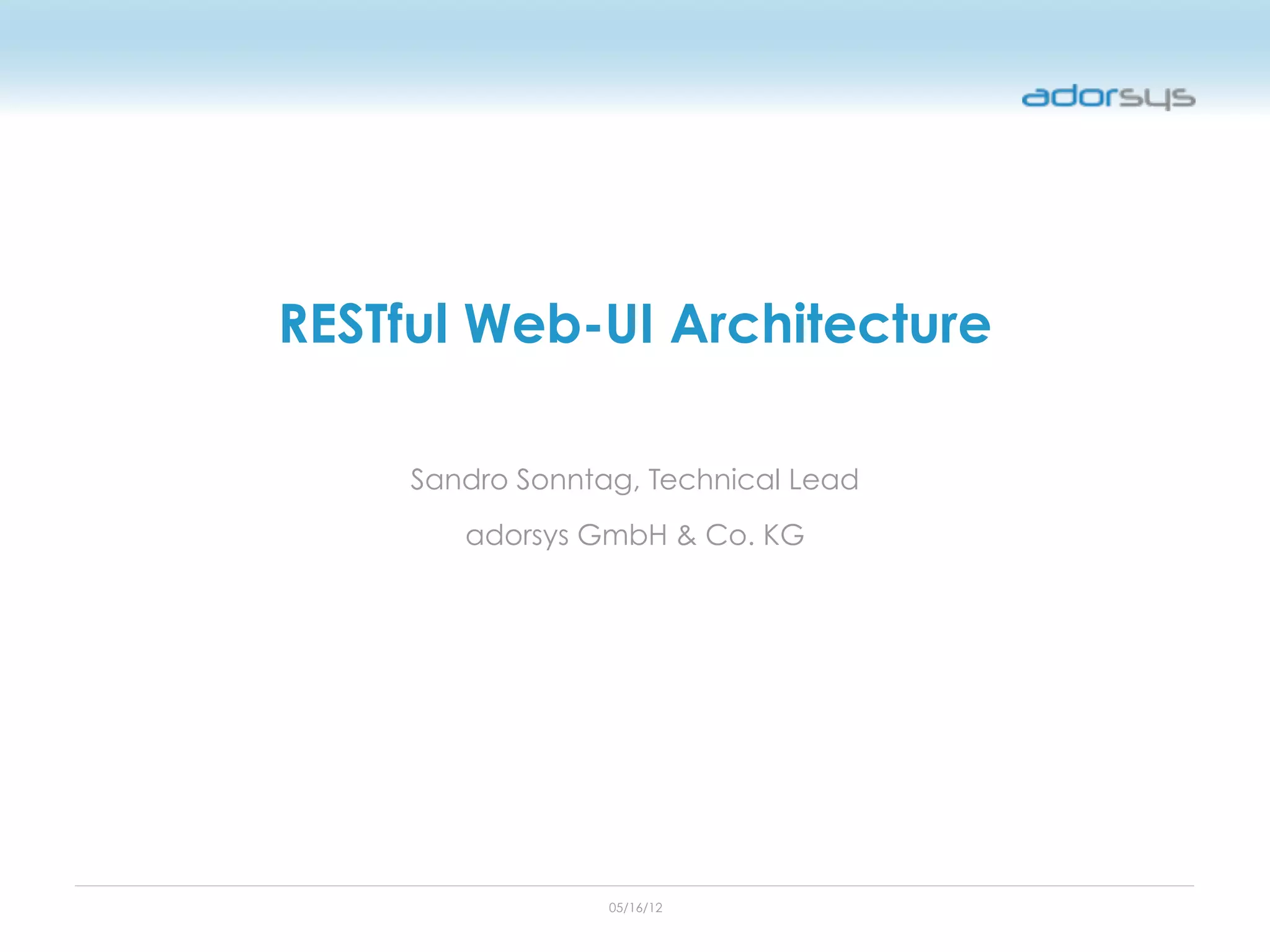 Das Dokument beschreibt die Herausforderungen herkömmlicher Thin-Client-Architekturen und schlägt eine cloud-zentrierte Thin-Server-Architektur vor, die eine bessere Trennung von Präsentations- und Geschäftlogik ermöglicht. Es hebt die Probleme von Komplexität, Latenz und Skalierbarkeit hervor, die durch die Verwendung traditioneller Webanwendungen entstehen, und betont die Notwendigkeit von RESTful Ansätzen für eine verbesserte Benutzererfahrung. Die Implementierung einer komponentisierten Frontend-Architektur wird als Lösung dargestellt, um die Wiederverwendbarkeit von UI-Komponenten und die Interoperabilität zu fördern.