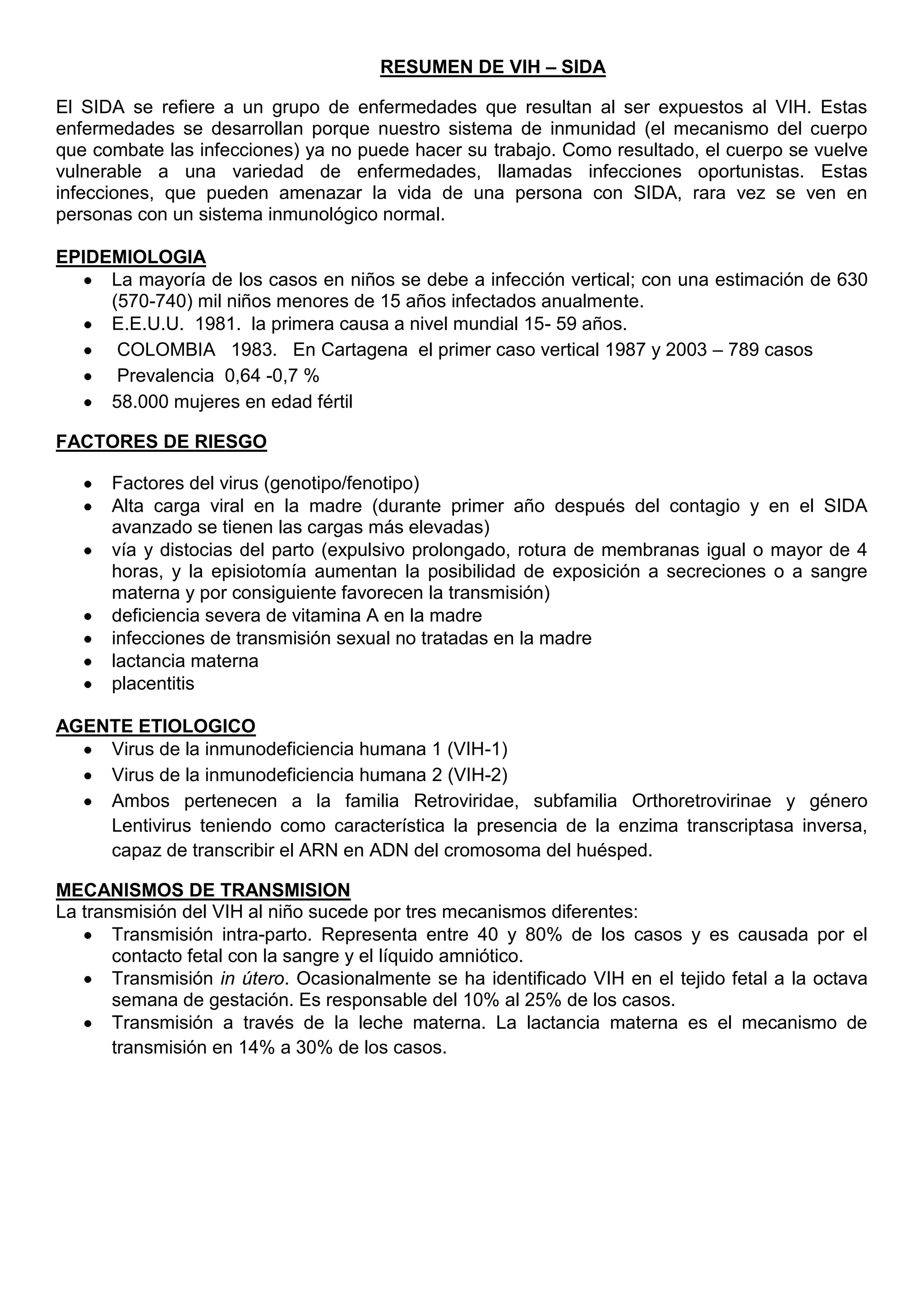 Resumen de vih