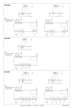 Das Dokument enthält Bedienungsanleitungen und technische Spezifikationen für die Ekc 202a/b/c Steuerung von Danfoss, die sich auf Temperaturregelung, Abtauen und Netzwerkadresseinstellungen konzentrieren. Es werden die Funktionscodes, Werksvoreinstellungen und Parameter für den Betrieb sowie die Fehler- und Alarmcodes detailliert aufgeführt. Die Anleitung beschreibt auch die Anpassung verschiedener Parameter zur Optimierung der Kühl- und Abtaufunktionen.
