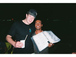 Das Dokument beschreibt einen Geburtstag, der am Meer gefeiert wurde, und die damit verbundenen Gerüchte über die Kleidung des Geburtstagskindes. Es wird auf ein musikalisches Event hingewiesen, und trotz kritischer Meinungen versucht der Verfasser, respektvoll zu bleiben. Am nächsten Morgen hatte der Verfasser Kopfschmerzen.