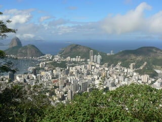 Das Dokument beschreibt die touristischen Attraktionen von Rio de Janeiro, insbesondere die Copacabana, den Corcovado mit dem Cristo Redentor und den Zuckerhut. Es erwähnt auch die Straßen des Karnevals und die Rocinha, die größte Favela der Stadt. Zudem wird angedeutet, dass das Leben in der Stadt von einer gewissen Unbeschwertheit geprägt ist, auch in Bezug auf den Zugang zu Ressourcen.
