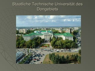 Das Dokument listet mehrere Universitäten in Rostow am Don auf, einschließlich der südlichen föderalen Universität, der staatlichen technischen Universität des Dongebiets und der rostower staatlichen medizinischen Universität. Zudem werden Rankings und die Anzahl der Studierenden sowie das Prestige der Universitäten thematisiert. Die Bauuniversität und die südliche föderale Universität werden als die prestigeträchtigsten Hochschulen genannt.