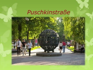 Die Puschkinstraße in Rostow, erstmals 1870 auf dem Stadtplan, ist heute eine Fußgängerzone mit historischen Gebäuden, Denkmälern und dem beliebten Gorki-Park. Der Park ist bekannt für seine Springbrunnen, Cafés und Veranstaltungen sowie als Ort zum Souvenirkauf. In der Straße steht das einzige gotische Gebäude der Stadt, die Doner Bücherei.