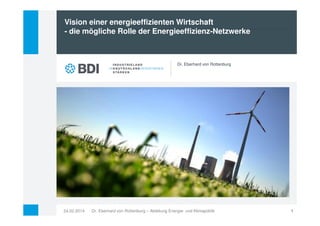 Das Dokument behandelt die Rolle von Energieeffizienznetzwerken in Deutschland zur Förderung einer energieeffizienten Wirtschaft. Es werden Herausforderungen und Hindernisse aufgezeigt, die einer vollständigen Ausschöpfung der Energieeffizienzpotenziale im Weg stehen, sowie politische Strategien zur Verbesserung der Effizienz erwähnt. Der Fokus liegt auf der Notwendigkeit von Anreizen und Maßnahmen, insbesondere im Gebäudesektor, um Effizienzmaßnahmen wirtschaftlich umzusetzen.