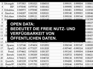 Das Dokument behandelt die Bedeutung von Open Data und den offenen Zugang zu öffentlich finanzierter Forschung. Es wird erörtert, wie Transparenz und Offenheit die Validität und Reproduzierbarkeit von Forschungsergebnissen steigern können. Zudem werden Fragen zu politischen Entscheidungen und deren Auswirkungen angesprochen.
