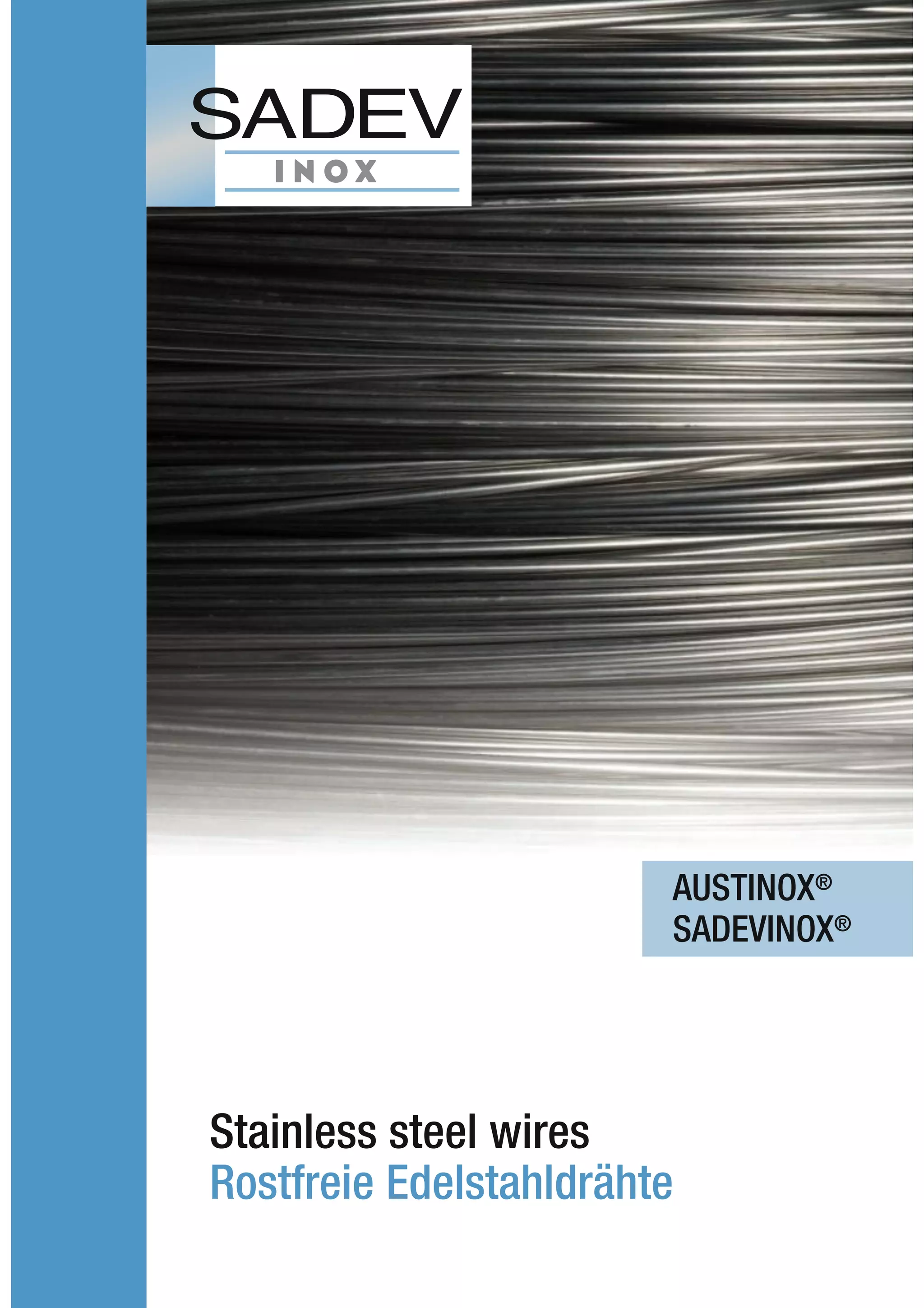 Das Dokument behandelt das Produktportfolio von rostfreien Edelstahldrähten der Marken austinox® und sadevinox®, einschließlich chemischer Zusammensetzungen, europäischer Standards sowie spezieller Charakteristiken der verschiedenen Werkstoffe. Es bietet detaillierte Informationen über austenitische, ferritische und martensitische Werkstoffe sowie deren Anwendungen in der Schweißtechnik. Zusätzlich werden spezifische Daten zu Verarbeitbarkeit und mechanischen Eigenschaften von Federstahldrähten gegeben.