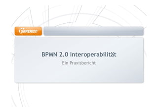 Der Bericht behandelt die Interoperabilität von BPMN 2.0 und die Herausforderungen bei der Modellierung und Integration von Geschäftsprozessen mit verschiedenen Workflow-Engines. Saperion, ein Anbieter für Enterprise Content Management, zeigt Möglichkeiten zur Verbesserung der Interoperabilität, insbesondere durch Kooperationen mit anderen Tools wie Signavio. Das Dokument fordert eine Weiterentwicklung von BPMN 2.1, um Benutzerfreundlichkeit und Flexibilität für fachliche Sichtweisen zu erhöhen.