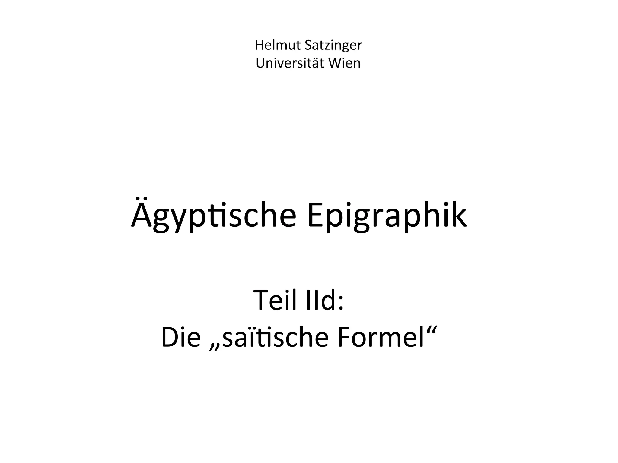 Das Dokument behandelt die 'saïsche Formel', die im Neuen Reich ab der 18. Dynastie sowie in der Spätzeit häufig auf dem Rückenpfeiler von Statuen vorkommt. Inhalt und Funktion dieser Formel sind umstritten und vielfältig in ihrer Erscheinungsform. Es werden verschiedene Statuen und deren Inv.-Nummern erwähnt, die die saïtische Formel tragen, sowie Forschungsliteratur zur Thematik.