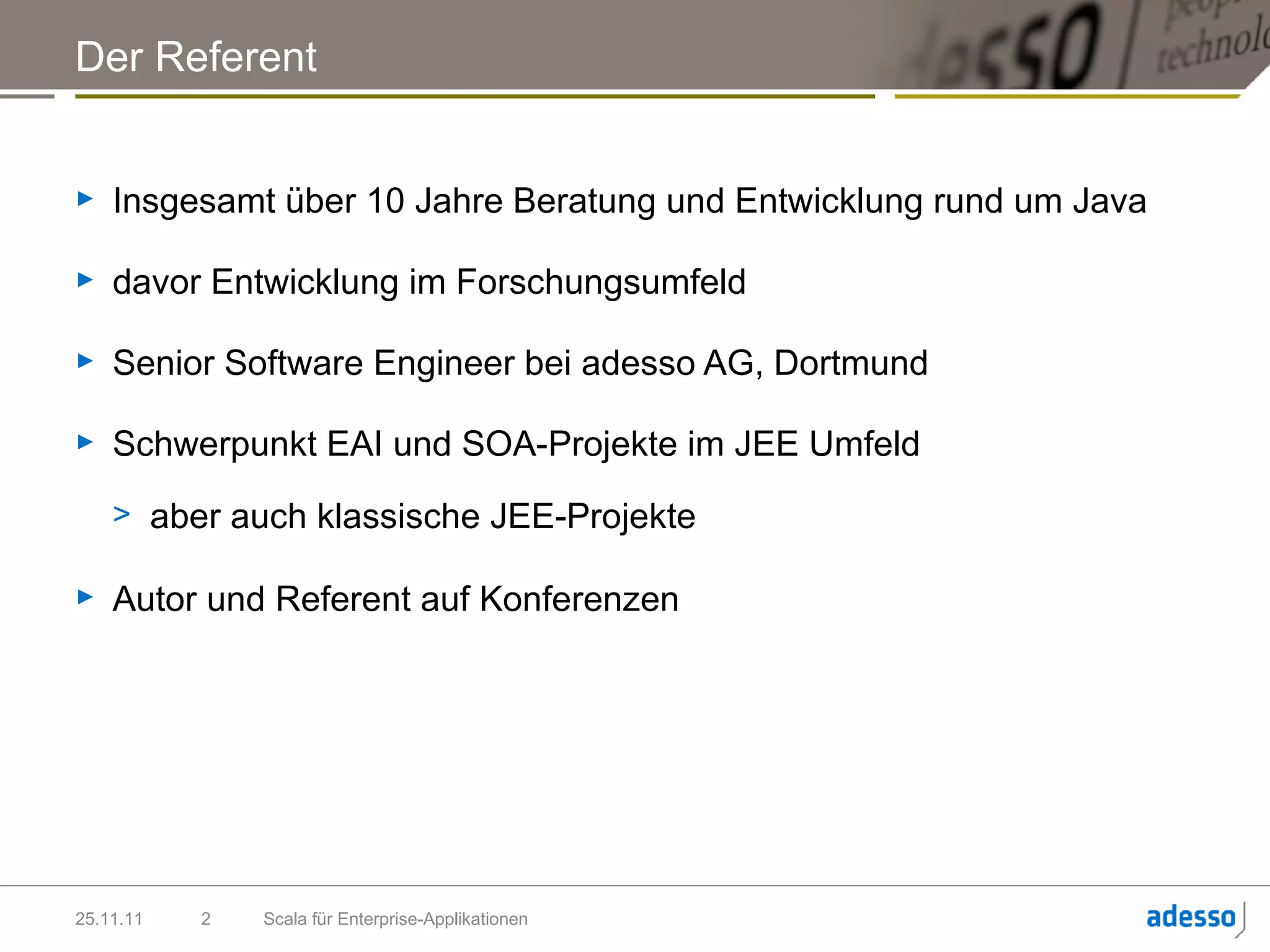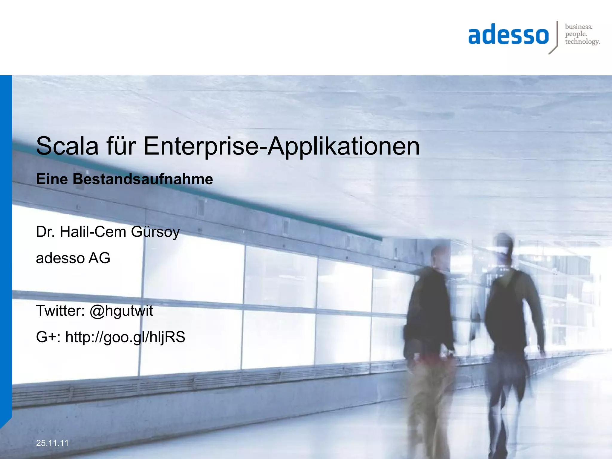 Die Präsentation von Dr. Halil-Cem Gürsoy behandelt die Eignung der Programmiersprache Scala für Enterprise-Anwendungen und diskutiert Werkzeuge, Syntax sowie die Herausforderungen im Zusammenhang mit Versionskompatibilität. Es wird argumentiert, dass trotz der Komplexität und Lernkurve von Scala, die Sprache inzwischen reif für den Einsatz in Unternehmensumgebungen ist. Der Vortrag schließt mit der Feststellung, dass Scala über die erforderlichen Funktionen und den nötigen Support verfügt, um in der Enterprise-Entwicklung erfolgreich eingesetzt zu werden.