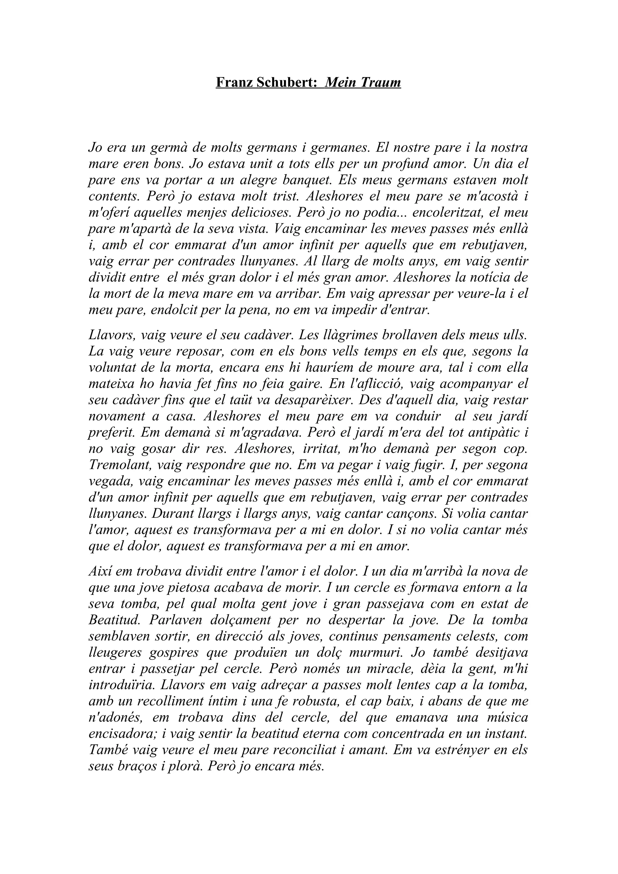 El Somni de Franz Schubert. Traducció: FCP