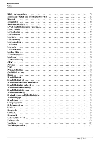 Das Dokument beschreibt den Aufbau und die Ausstattung von Schulbibliotheken und hebt die Bedeutung aktueller, multifunktionaler und multimedialer Ressourcen hervor. Es gibt umfangreiche Empfehlungen für die Auswahl von Medien, die Organisation von Lesungen und die Kooperation mit öffentlichen Bibliotheken. Zudem werden Best Practices für die Förderung der Lesekultur und die effiziente Bibliotheksnutzung in Schulen erörtert.