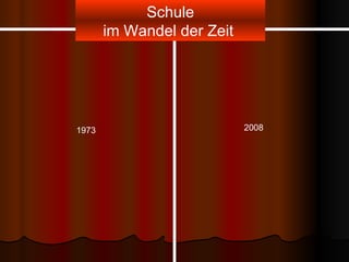 Das Dokument schildert die Entwicklung des Schullebens von 1973 bis 2008 anhand der Figur Robert, der verschiedene Erlebnisse und Herausforderungen hatte, darunter ein Amoklauf und soziale Probleme. Während 1973 Disziplin und einfache Probleme im Vordergrund standen, sind 2008 komplexe Fragen zu Gewalt, psychischen Erkrankungen und gesellschaftlicher Diskriminierung relevante Themen. Die Veränderungen im Umgang mit Schülern und deren Problemen reflektieren gesellschaftliche Entwicklungen und die zunehmende Komplexität des Schulsystems.