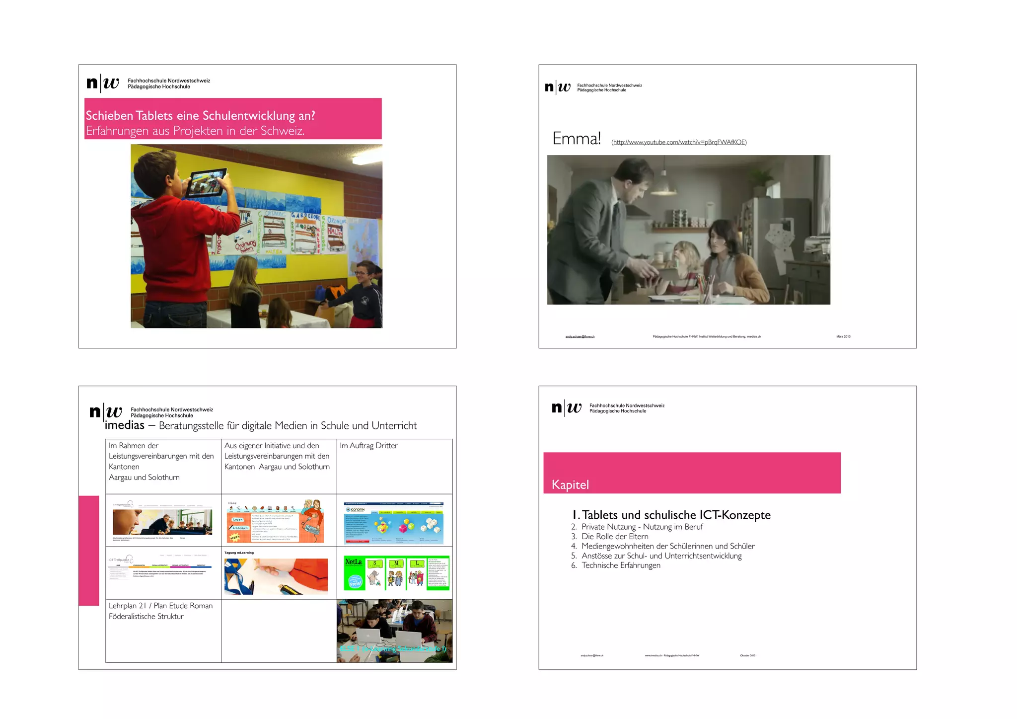Das Dokument behandelt die Einführung und Auswirkungen von Tablets auf die schulische Entwicklung in der Schweiz. Es beleuchtet die Nutzung von mobilen Geräten im Unterricht, die Rolle von Eltern, Mediengewohnheiten der Schüler und die technischen Herausforderungen, die bei der Integration von Tablets in den Schulalltag auftreten. Zudem werden positive und negative Erfahrungen während dieser Veränderungsprozesse diskutiert.