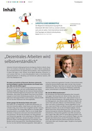 Das Dokument behandelt die Veränderungen in der Arbeitswelt, insbesondere durch den Trend zur Individualisierung und dezentralen Arbeitsformen, die durch digitale Technologien gefördert werden. Dabei wird der Übergang von traditionellen Arbeitsmodellen zu flexibleren, projektorientierten Strukturen beschrieben, die von einer neuen Generation von Arbeitnehmern geprägt sind. Es wird auch auf die Herausforderungen eingegangen, die Unternehmen dabei haben, eine offene Kommunikation und soziale Medien effektiv in ihre internen Prozesse zu integrieren.
