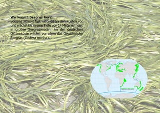 Bitte besuchen Sie auch WWW.SEEGRASHANDEL.de Seegras wurde seit Jahrhunderten vor allem als Polstermaterial, aber auch für Dacheindeckungen und Dämmung verwendet. Es gab sogar einige Fabriken, die das Seegras verarbeitet haben, in Dänemark z.B. bis zu 8 Mio. Tonnen jährlich. Seegras hat von Natur aus viele Vorteile: schwere Entflammbarkeit, gute Dämmeigenschaften, resistent gegen Schimmel und Schädlinge, unempfindlich gegen Feuchtigkeit und allergikerfreundlich. Seegras aus 200 Jahren alten Matrazen ist z.B. noch fast unverändert! Heute wird Seegras noch als Dacheindeckung für die traditionellen Häuser auf der dänischen Insel Laesö verwendet. In den 50iger Jahren wurde Seegras vor allem durch Erdölprodukte ersetzt. Konventionelle Produkte wie Glas-, Steinwolle, Polyurethan und Styropor haben eine sehr schlechte Ökobilanz, sie benötigen zur Herstellung viel Energie und Ressourcen und sind stark abhängig vom knapper werdenden Erdöl. Außerdem sind sie bei der Verarbeitung teilweise gesundheitsschädlich, können bei Feuer giftige Gase entwickeln oder es entstehen neue Probleme wie Schimmelbildung. Mit dem Aufkommen des ökologischen Bauen wurde Seegras von einigen Bauherren selber gesammelt und als Dämmstoff verwendet. Es gab auch Versuche, das in großen Massen bei der Strandreinigung anfallende Seegras zu verwerten, allerdings ist hierbei die Verunreinigung mit Sand und Müll sehr groß und die Reinigung entsprechend aufwendig. Im Zuge dessen wurde Seegras vom Deutschen Institut für Bautechnik als Dämmstoff anerkannt, da diese Anerkennung aber mittlerweile erloschen ist, muss sie neu beantragt werden. Durch den hohen Silikatgehalt (Kieselsäure) ist das Seegras von Natur aus nicht brennbar sowie gegen Schädlinge resistent. Seegras ist auch besonders unempfindlich gegen Feuchtigkeit. Solange es wieder austrocknen kann, hat Schimmel daher keine Chance. Das Seegras was wir anbieten wird auf Wiesen wie Heu gerocknet und durch Regen wird das verbliebene Meersalz ausgewaschen, dadurch enthält es so gut wie kein Salz und ist kaum hygroskopisch (wasserziehend). Die Wärmeleitfähigkeit ist vergleichbar mit der von anderen Naturdämmstoffen und richtet sich nach der Stärke und Dichte. http://www.seegrashandel.de