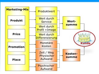 Das Dokument behandelt die Kundensegmentierung im Marketing und die Bedeutung von CRM-Systemen zur Zielgruppenidentifikation und Angebotspositionierung. Es wird dargelegt, wie eine präzise Segmentierung durch verschiedene Kriterien ermöglicht wird, um den spezifischen Bedürfnissen der Zielgruppen gerecht zu werden und sich von der Konkurrenz abzuheben. Zudem wird die Rolle von Positionierungsstrategien und der Unique Selling Proposition (USP) in der effektiven Marktansprache hervorgehoben.