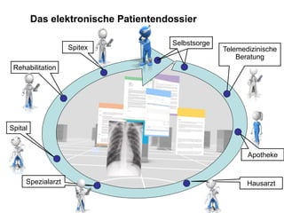 Das Dokument von Adrian Schmid gibt einen Überblick über die Erfolgsfaktoren des elektronischen Patientendossiers in der Schweiz und bewertet deren aktuelle Umsetzung. Es werden verschiedene Bereiche wie regionale Verankerung, Bedürfnisse der Patienten, gesundheitspolitische Aspekte und technische Standards behandelt. Insgesamt wird festgestellt, dass während einige Bereiche gut vorankommen, in anderen noch erhebliche Arbeit erforderlich ist.