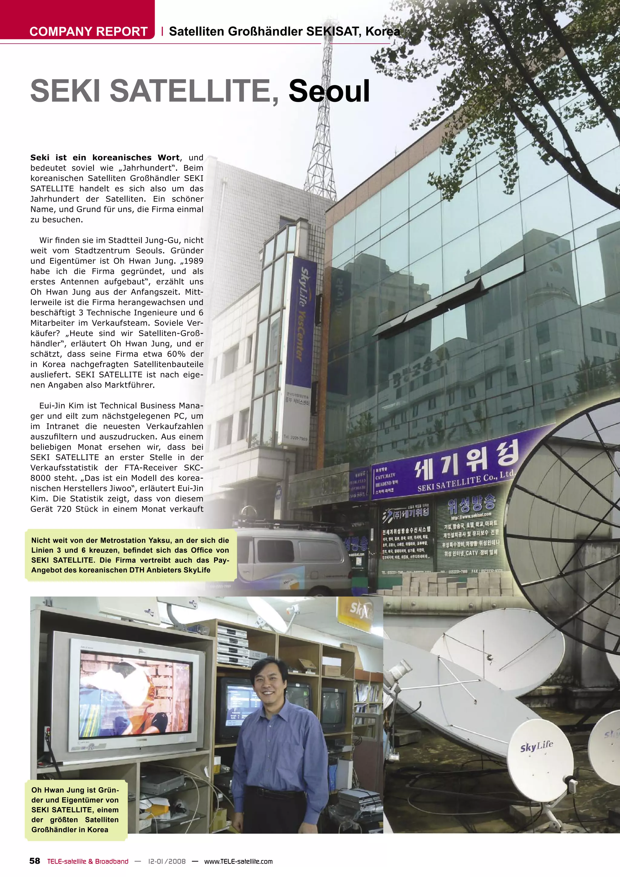 Sekisat ist ein führender koreanischer Satelliten-Großhändler mit Sitz in Seoul, gegründet von Oh Hwan Jung im Jahr 1989. Die Firma beliefert etwa 60% der in Korea nachgefragten Satellitenbauteile und bietet Produkte wie FTA-Receiver und Pay-TV Anlagen an, unter anderem für den Anbieter Skylife. Ein technisches Team arbeitet daran, die neuesten Verkaufszahlen zu analysieren und die Kunden über verschiedene Empfangsoptionen zu informieren.